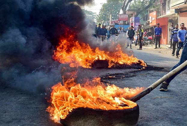 નાગરિકતા બિલના વિરોધમાં શનિવારે બંગળાના ઘણા શહેરોમાં હિંસા અને આગની ઘટનાઓ થઇ. કોલકાતા પાસે હાવડામાં પ્રદર્શનકારીઓએ હાઇવે જામ કરીને 10 બસોમાં આગ લગાવી દીધી હતી. ઘણા અન્ય વાહનો અને કચેરીઓમાં તોડફોડ કરી. તે સિવાય ભીડે સંકરાઇલ સ્ટેશન કોમ્પ્લેક્સ પર પણ તોડફોડ કરીને આગ લગાવવામાં આવી હતી. આ ઘટનામાં બે CRPFના જવાનો સાથે પણ મારપીટ કરવામાં આવી હતી. પૂર્વી રેલવેએ સિયાલદહ-હસનાબાદ વચ્ચે ટ્રેન સેવા રદ્દ કરી નાખી છે. મુખ્યમંત્રી મમતા બેનરજીએ પ્રદર્શનકારીઓને કહ્યું છે કે, લોકતાંત્રિક રીતે વિરોધ કરો અને કાયદો હાથમાં ન લો.નાગરિકતા કાયદાના વિરોધમાં પૂર્વોત્તરના રાજ્યોમાં 6 દિવસથી ઉગ્ર પ્રદર્શન થઈ રહ્યું છે. આસામમાં શનિવારે કર્ફ્યુમાં સવારે 9 વાગ્યાથી 4 વાગ્યા સુધી સાત કલાક માટે છૂટ આપવામાં આવી છે. જોકે, ઈન્ટરનેટ સેવા બંધ રહેશે. બીજીબાજુ ઓલ આસામ સ્ટુડન્ટ્સ યુનિયન (આજસૂ) એ 3 દિવસ માટે સત્યાગ્રહની જાહેરાત કરી. નાગા સ્ટુડેન્ટ્સ ફેડરેશન (NSF)એ શનિવારે 6 કલાક બંધનું એલાન કર્યું હતુ.