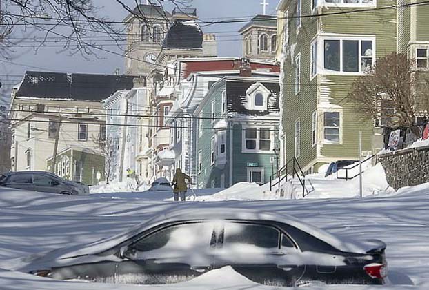 દેશમાં આવેલા બર્ફીલા તૂફાન- બોમ્બ સાયક્લોને ન્યૂ ફાઉન્ડલેન્ડ, એટલાન્ટિક અને લેબ્રાડોર રાજ્યમાં તબાહી મચાવી દીધી છે. શુક્રવાર-શનિવારે બર્ફીલા તૂફાનની ચપેટમાં આવ્યા બાદ ન્યૂ ફાઉન્ડલેન્ડની રાજધાની સેન્ટ જોનમાં ઈતિહાસની અત્યાર સુધીની સૌથી વધારે બર્ફવર્ષા પડી હતી. સેન્ટ જોન ઇન્ટરનેશનલ એરપોર્ટ પર 120-157 કિમી પ્રતિ કલાકની સ્પીડથી હવાઓ ચાલી જેના કારણે હવાઇ સેવાઓ રોકવી પડી હતી.