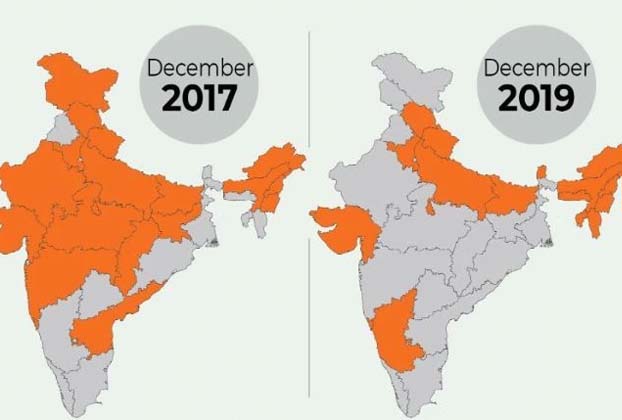 ડિસેમ્બર 2017માં એનડીએની સ્થિતિ સારી હતી. ભાજપા અને તેમના સહયોગી પક્ષોની પાસે 19 રાજ્યો હતા. એક વર્ષ બાદ ભાજપે ત્રણ રાજ્યો મધ્યપ્રદેશ, રાજસ્થાન અને છત્તીસગઢમાંથી પોતાની સરકાર ગુમાવી દીધી હતી. ચોથુ રાજ્ય આંધ્ર પ્રદેશ છે, જ્યાં ભાજપા-ટીડીપી ગઠબંધનની સરકાર હતી. માર્ચ 2018માં ટીડીપીએ ભાજપ સાથેનું પોતાનું ગઠબંધન તોડી દીધું હતું. 2019માં યોજાયેલી વિધાનસભાની ચૂંટણીમાં આ વાઈએસઆર કોંગ્રેસની સરકાર બનાવી છે. પાંચમું રાજ્ય માહારાષ્ટ્ર છે, જ્યાં ચૂંટણી બાદ શિવસેનાએ એનડીએનો સાથ છોડી દીધો હતો અને ત્યારબાદ તેમણે કોંગ્રેસ અને એનસીપી સાથે હાથ મિલાવીને સરકાર રચી હતી.