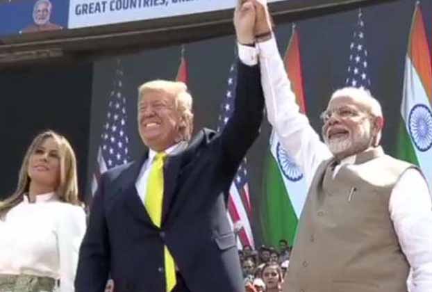મોટેરા સ્ટેડિયમમાં પ્રધાનમંત્રી નરેન્દ્ર મોદીએ પ્રેસિડેન્ટ ડોનાલ્ડ ટ્રમ્પ અને તેમની પત્ની મેલેનિયાનું સ્વાગત કર્યું હતું. રાષ્ટ્રગાન બાદ પ્રધાનમંત્રી નરેન્દ્ર મોદીએ મોટેરામાં ઉપસ્થિત જનતાનો આભાર માન્યો હતો. અમેરિકાના રાષ્ટ્રપતિ ડોનાલ્ડ ટ્રમ્પ અને પ્રધાનમંત્રી જ્યારે મોટેરા સ્ટેડિયમ પહોંચ્યા ત્યારે ત્યાં ઉપસ્થિત એક લાખથી વધારે લોકોએ તેમનું સ્વાગત કર્યું હતું. લાખોની ભીડ જોઈ રાષ્ટ્રપતિ ટ્રમ્પ પણ ગદગદિત થઈ ગયા હતા. પીએમ મોદીએ કહ્યું કે, આ ધરતી ગુજરાતની છે પણ આજે સમગ્ર ભારતનો નજારો જોવા મળી રહ્યો છે. પોતાના સ્વાગત ભાષણમાં પ્રધાનમંત્રી નરેન્દ્ર મોદીએ આજે અમેરિકા અને ભારતના સંબંધો નવી ઉંચાઈઓ સ્પર્શી રહ્યા છે.