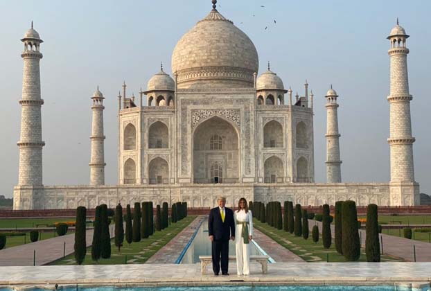 અમેરિકી રાષ્ટ્ર પ્રમુખ ડોનાલ્ડ ટ્રમ્પ અમદાવાદમાં નમસ્તે કાર્યક્રમમાં ભાગ લઇ તેઓ આગ્રા ખાતે પહોંચ્યા હતા. તેમની સાથે તેમની પત્ની મેલેનિયા, ઈવાન્કા અને તેમના જમાઈ જેરેડ કુશનર પણ હાજર છે. ડોનાલ્ડ ટ્રમ્પ અને તેમના પરિવારનું સ્વાગતઆગ્રા એરપોર્ટ પર યુપી ગવર્નર આનંદીબેન પટેલ, મુખ્યમંત્રી યોગી આદિત્યનાથે સ્વાગત કર્યું હતું. ટ્રમ્પ પરિવારે વિશ્વના સાત અજાયબી પૈકીના એક તાજ મહેલની મુલાકાત લીધી હતી અને ભારતની વૈભવી સંસ્કૃતિના વખાણ કર્યા હતા.