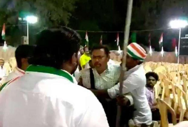 તમિલનાડુના વિરૂધુનગરમાં કોંગ્રેસના કાર્યકરોની ગુડાગર્દી સામે આવી. તમિલનાડુમાં અસ્તવની તલાશમાં રહેલી કોંગ્રેસ હવે પત્રકારો સાથે મારામારી પર ઉતરી આવી છે. વિરૂધુનગરમાં કોંગ્રેસ દ્વારા એક રેલીનું આયોજન કરવામાં આવ્યુ હતુ. પરંતુ આ રેલીમાં કોઈપણ જોવા મળ્યુ નથી. જેથી રેલીમાં મુકવામા આવેલી તમામ ખુરશી ઓ ખાલી જોવા મળી હતી. આ ખાલી ખુરશીની તસ્વીર ફોટો જર્નાલિસ્ટે લેવાની કોશિશ કરી તો કોંગ્રેસના કાર્યકરોએ તેની સાથે ઉગ્ર બોલાચાલી બાદ મારામારી કરી હતી. જોકે, કોંગ્રેસના કેટલાક નેતાઓએ દરમ્યાનગીરી કરી પત્રકારને છોડાવ્યો હતો.