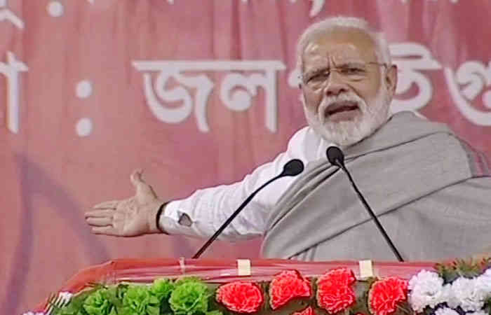 વડાપ્રધાન નરેન્દ્ર મોદી પશ્ચિમ બંગાળની મુલાકાત દરમ્યાન જલપાઇગુડીમાં તેમણે એક રેલીને પણ સંબોધિત કરી. આ દરમિયાન તેમણે તીન તલાક કાનુન પર કહ્યુ કે, વિશ્વાસ રાખો, આ કાનુન હટવા નહી દેવામાં આવે. નોંધનિય છે કે, કોંગ્રેસે સત્તામાં આવવા પર તીન તલાક કાયદો હટાવવાની વાત કરી હતી. આ સિવાય વડાપ્રધાન મોદીએ અહીંની મમતા સરકાર પર નિશાન સાધ્યુ. તેમણે કહ્યું કે, પશ્ચિમ બંગાળની માટીને બદનામ કરી દીધી છે અને લોકોને મજબૂર કરી દેવામાં આવ્યા છે. પ. બંગાળ જે પોતાની કલા અને સંસ્કૃતિ માટે ઓળખાય છે તે હવે હિંસા અને અલોકતાંત્રિક પદ્ધતિ માટે ચર્ચામાં છે. તેમણે વધુમાં કહ્યું કે, દેશના ઇતિહાસમાં આ પહેલીવાર જોવા મળ્યુ કે કોઇ મુખ્યમંત્રી હજારો ગરીબોને લૂંટનારાઓના પક્ષમાં ધરણા પર બેસી જાય. આજે પશ્ચિમ બંગાળમાં એક એવા મુખ્યમંત્રી છે જે ગરીબોની મહેનતથી ભેગી કરેલી પાઇ-પાઇને લૂંટાવનારા સાથે ઊભી છે. શા માટે મમતા દીદી ચિટફંડ ગોટાળાની તપાસથી તમે આટલા ડરેલા છો?