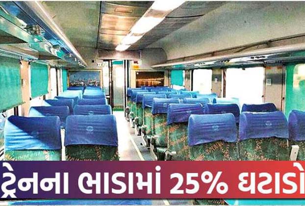 ભારતીય રેલ્વે આ ટ્રેનોમાં 25% ભાડું ઓછુ કરવાની યોજના મહિનાના અંત સુધી લાગુ કરવાની જાહેરાત કરી છે.