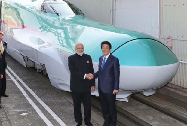 આ ટ્રેનના પ્રોજેક્ટનું ખાતમુહૂર્ત PM મોદી અને શિન્જો આબેએ વર્ષ 2017ની 14 સપ્ટેમ્બરે કર્યું હતું. બુલેટ ટ્રેન મુંબઈથી અમદાવાદ સુધીના 12 સ્ટેશન બનાવવામાં આવશે. બુલેટ ટ્રેનની લંબાઈ 508.5 કિલોમીટર રહેશે. બુલેટ ટ્રેનની ઓપરેટિંગ સ્પીડ 320 કિ.મી. પ્રતિ કલાક રહેશે. તેમજ મુંબઈ અને અમદાવાદ વચ્ચેનું 508 કિ.મી.નું અંતર માત્ર 2 કલાક 7 મિનિટમાં જ કપાશે. આ પ્રોજેકટ વર્ષ 2023માં પૂર્ણ થશે. અમદાવાદના સાબરમતી ખાતે બુલેટ ટ્રેનનું સ્ટેશન બનાવાશે. જે જાપાનના શિંકાનસેન ડિઝાઈનના આધારે તૈયાર થશે. આ પ્રોજેકટમાં 55 લાખ મેટ્રિક ટન સિમેન્ટનો વપરાશ થશે અને 15 લાખ મેટ્રિક ટન સ્ટીલનો ઉપયોગ કરવામાં આવશે.