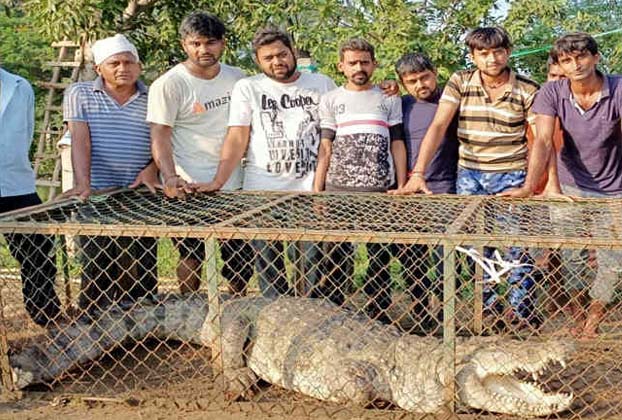વડોદરા નજીકના દુમાડ ગામમાંથી સૌથી વધુ મગરો પકડાઈ રહ્યા છે અને બે મહિનાના ગાળામાં આજે સૌથી મોટો 11 મો મગર પકડાયો છે.